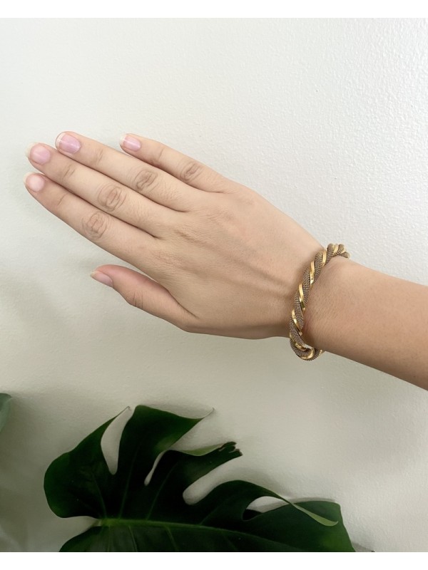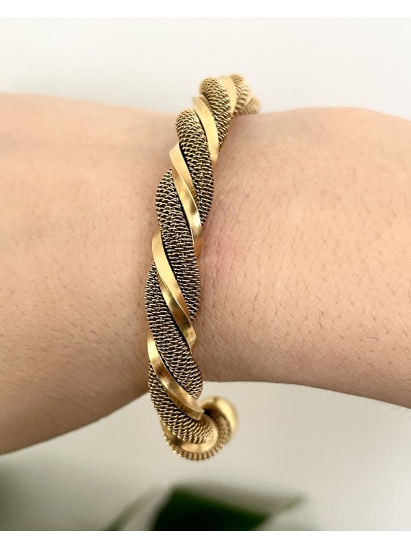 Manchette torsadée dorée, alliant maille texturée et rubans lisses en spirale