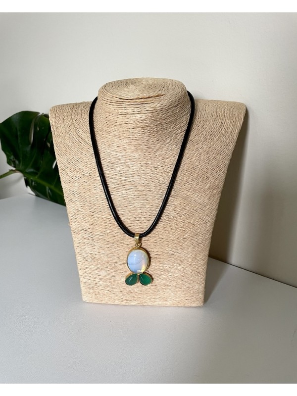 Collier cordon Poisson en pierre de lune & agate verte