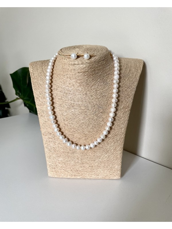 Parure collier et boucles d’oreilles en perles de culture