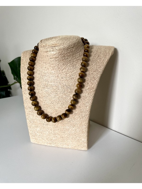 Collier en boules Œil de Tigre avec fermoir inoxydable
