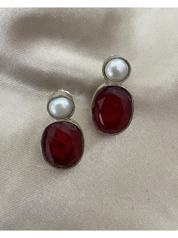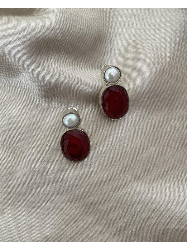 Boucles d’oreilles en argent avec perle et cristal rouge