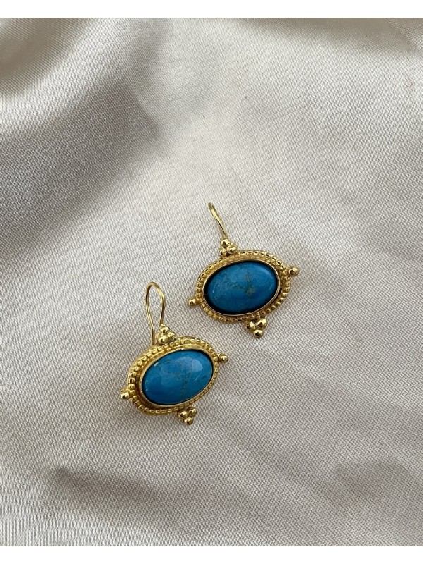 Boucles d’oreilles dorées, ornées d’une pierre turquoise ovale