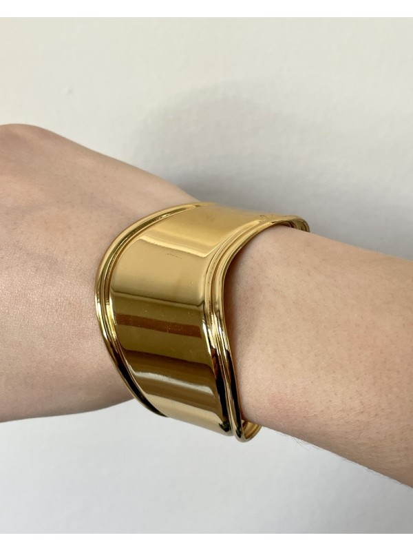 Manchette large au design épuré, finition dorée miroir brillante