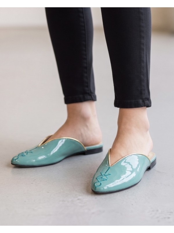 Mules vernies brillantes avec motif amazigh