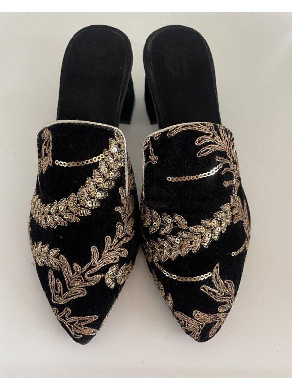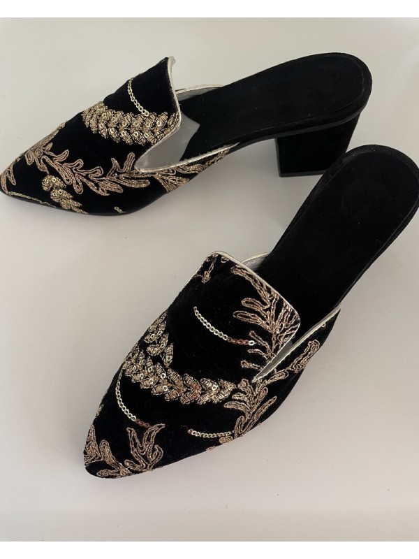 Des mules mi-hautes En velours noir avec une broderie dorée