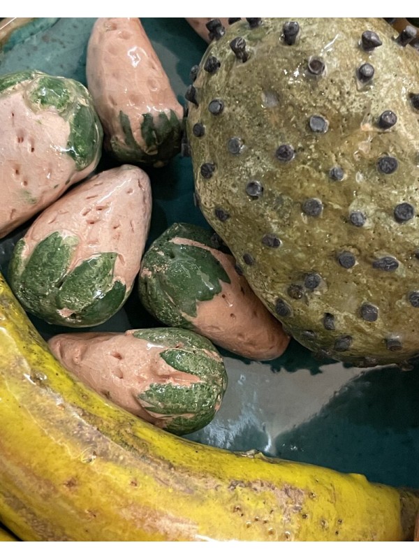 Lot de fruits en raku sans assiette , Les fruits soigneusement disposés, apportent une touche de fraîcheur avec ses teintes chaleureuses et éclatantes mettant en valeur la texture unique de chaque pièce. La finition brillante et marbrée du raku donne l'impression que les fruits sont presque réels