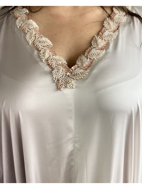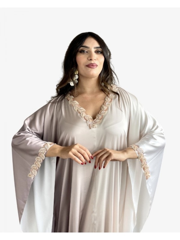 Jebba Papillon en soie, ornée de broderies en rocaille. Tissu à effet dégradé, disponible en trois coloris