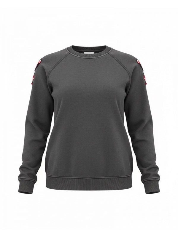 Sweatshirt en tissu coton avec broderie ethnique sur l'épaule